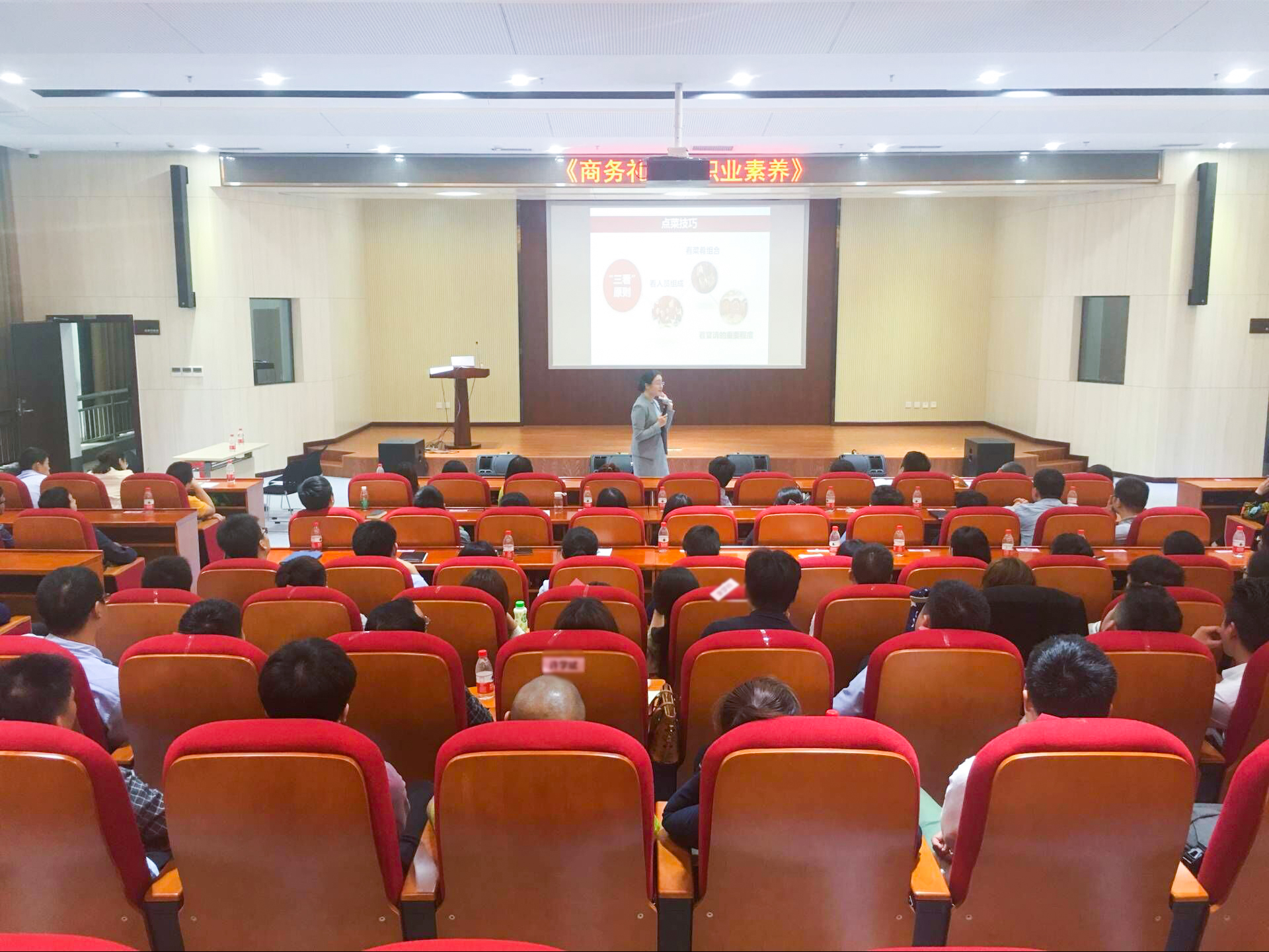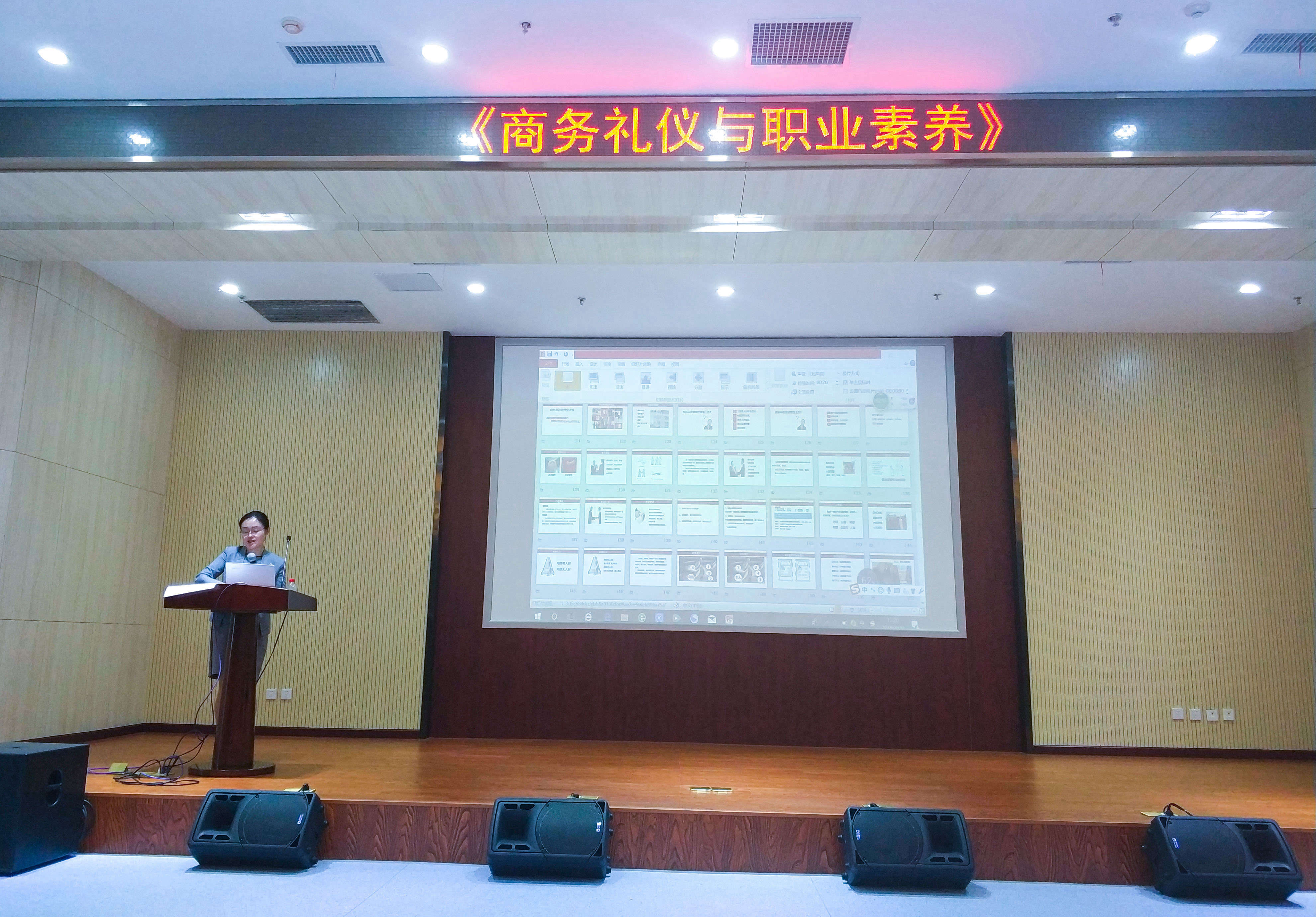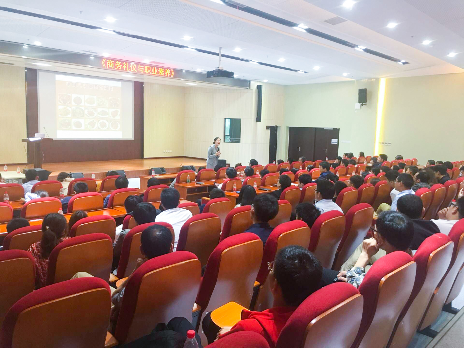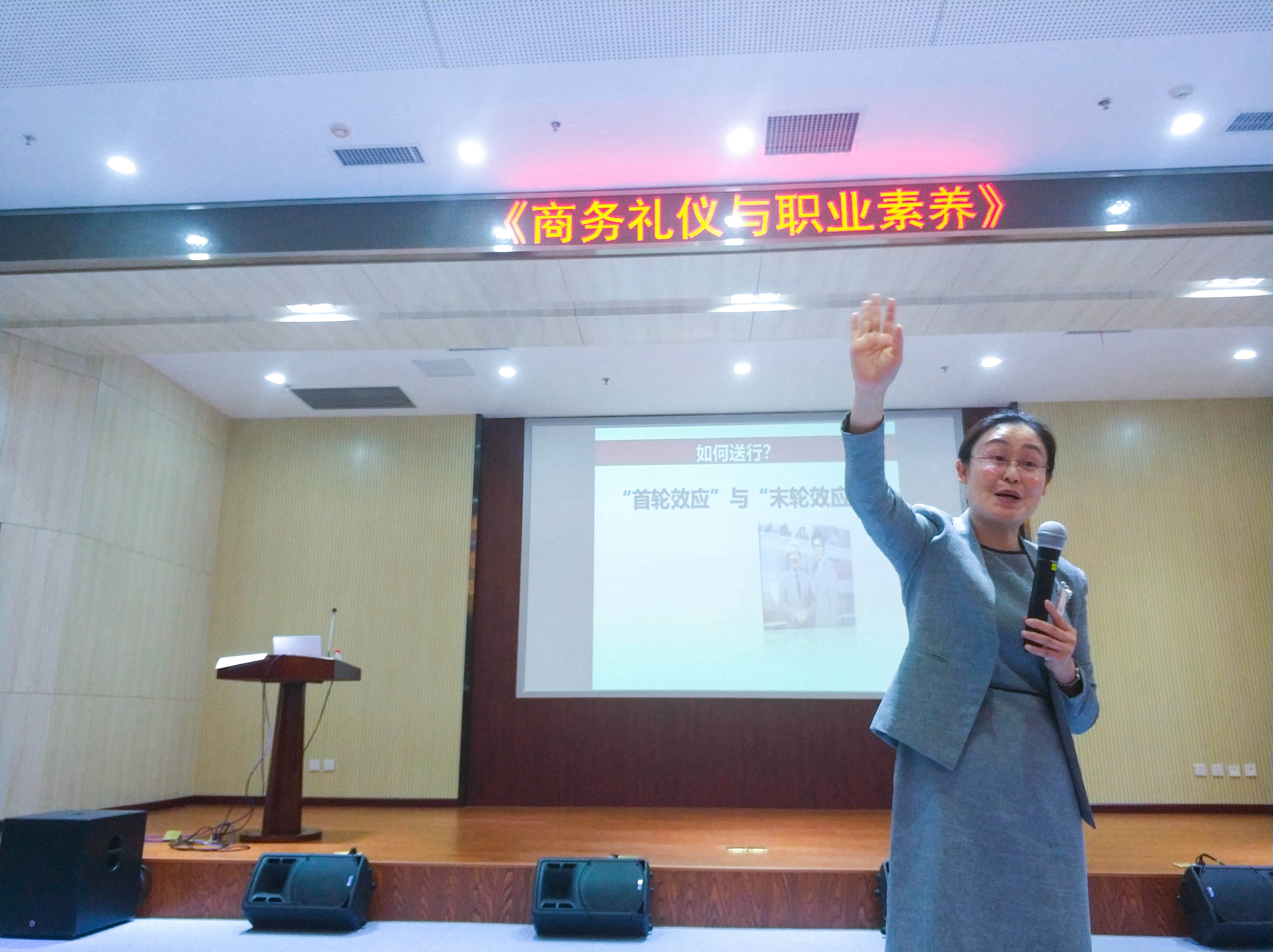 田老师首先为大家讲解了商务职场人士的仪容、仪表、仪态。关于个人形象,田老师详细阐述了作为商务职场人士的发型要求和面部修饰;关于商务着装,田老师分别从服装的颜色、款式、搭配各方面讲解了一个工作者的得体着装。